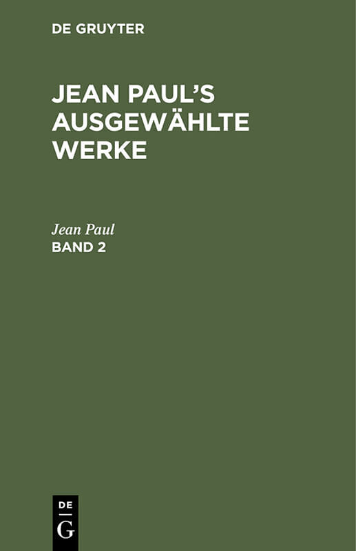 Dieser Titel, "Jean Paul's ausgewählte Werke. Band 2", ist eine wissenschaftliche Publikation, erschienen bei De Gruyter Brill. Ausführliche Beschreibung, Inhaltsverzeichnis und weitere Angaben finden Sie auf der Verlagswebsite: https://www.degruyterbrill.com/...