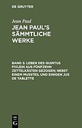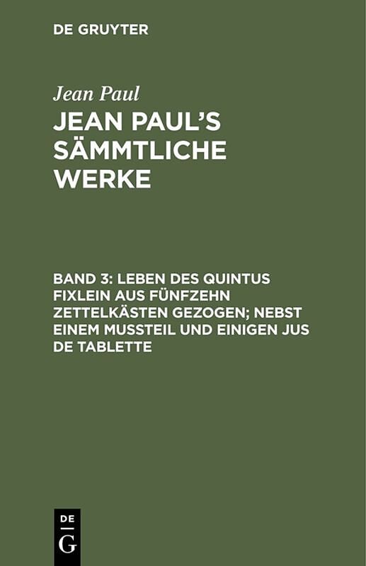 Keine ausführliche Beschreibung für "Leben des Quintus Fixlein aus fünfzehn Zettelkästen gezogen; nebst einem Mußteil und einigen Jus de tablette" verfügbar. Inhalt Frontmatter -- Inhalt des dritten Bandes -- Billet an meine Freunde, anstatt der Vorrede -- Ge...