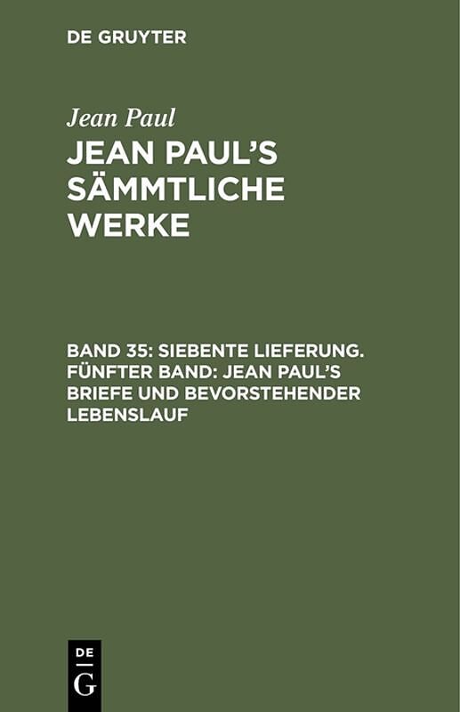 Keine ausführliche Beschreibung für "Siebente Lieferung. Fünfter Band: Jean Paul's Briefe und bevorstehender Lebenslauf" verfügbar. Zusammenfassung Frontmatter -- Inhalt -- Vorrede -- 1. Brief an Frau Spezialin Zeitman -- 2. Brief an Marietta Zeitman -- 3. Br...