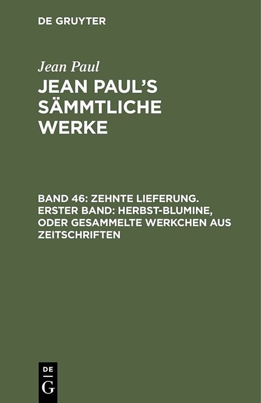 Keine ausführliche Beschreibung für "Zehnte Lieferung. Erster Band: Herbst-Blumine, oder Gesammelte Werkchen aus Zeitschriften" verfügbar. Zusammenfassung Frontmatter -- Zehnte Lieferung. -- Inhalt des ersten Bändchens -- Vorrede des dritten Bändchens -- Debi...