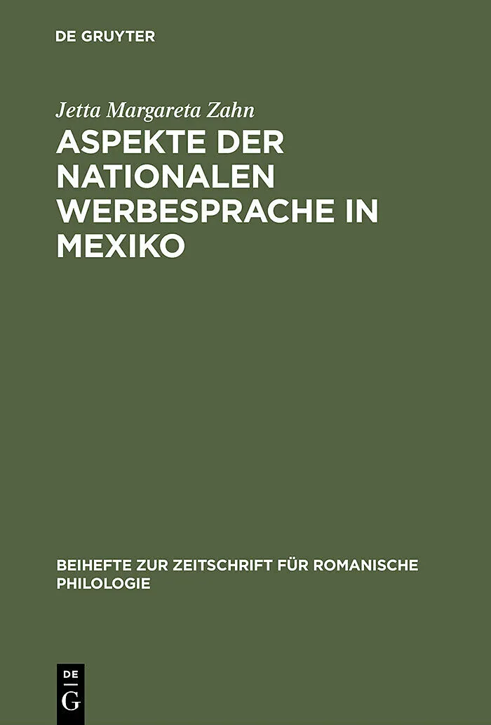 Dieser Titel, "Aspekte der nationalen Werbesprache in Mexiko", ist eine wissenschaftliche Publikation, erschienen bei De Gruyter Brill. Ausführliche Beschreibung, Inhaltsverzeichnis und weitere Angaben finden Sie auf der Verlagswebsite: https://www.degruyterbr...