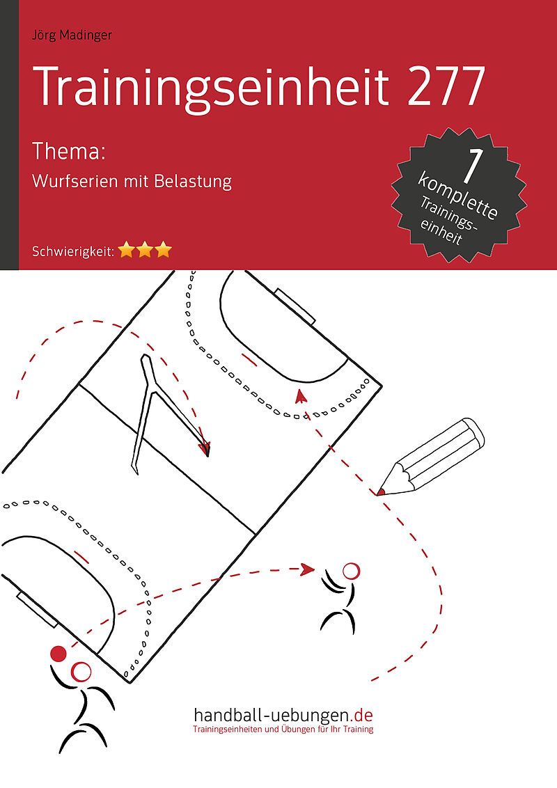 Der Schwerpunkt dieser Trainingseinheit liegt in belastenden Wurfserien aus dem Rückraum, von der Außenposition und aus dem Konter. Die Wurfserien beinhalten Sprünge und Tempoläufe vor und zwischen den Würfen. Nach der Erwärmung mit Ballgewöhnung und dem Torhü...