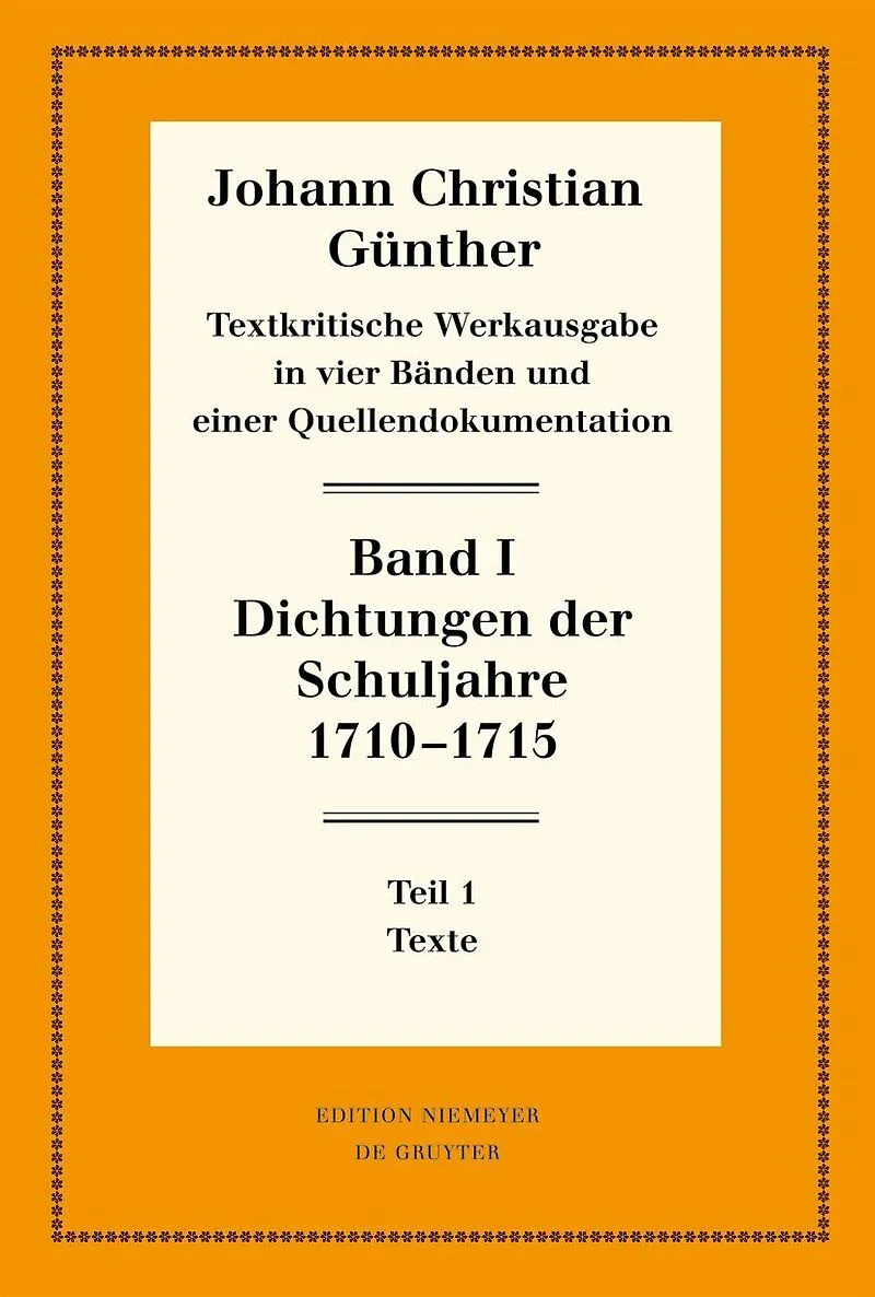 Until now, there has been no complete critical textual edition of the works of Günther, after Carl Enders was unable to realize his publishing plans and since Wilhelm Krämer's edition remained incomplete. The new edition takes all of the works of the great Si...