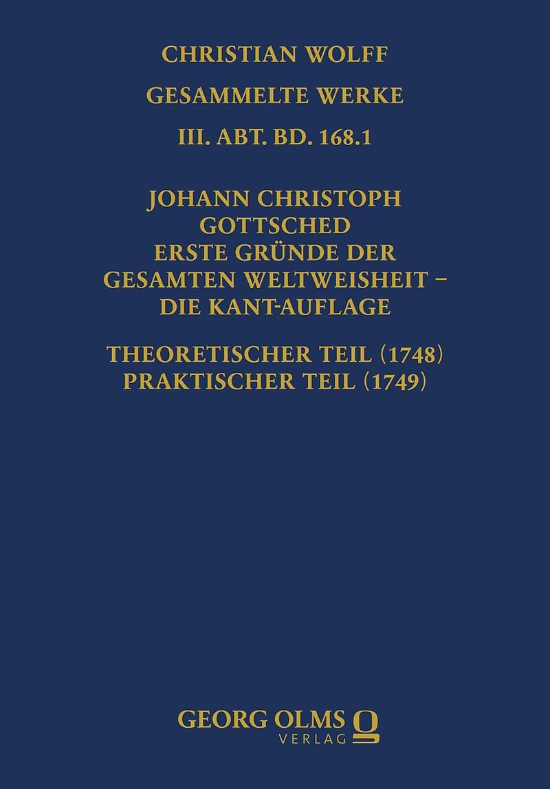 Gottscheds Erste Gründe (5. Aufl.,1748/49) aller philosophischen Disziplinen finden sich in Kants Bücherschrank: eine Kant-Auflage . Beide sind Königsberger. Eindeutige Beispiele eines begrifflichen Einflusses Gottscheds auf Kant sind: Critik , Urtheilskraft u...