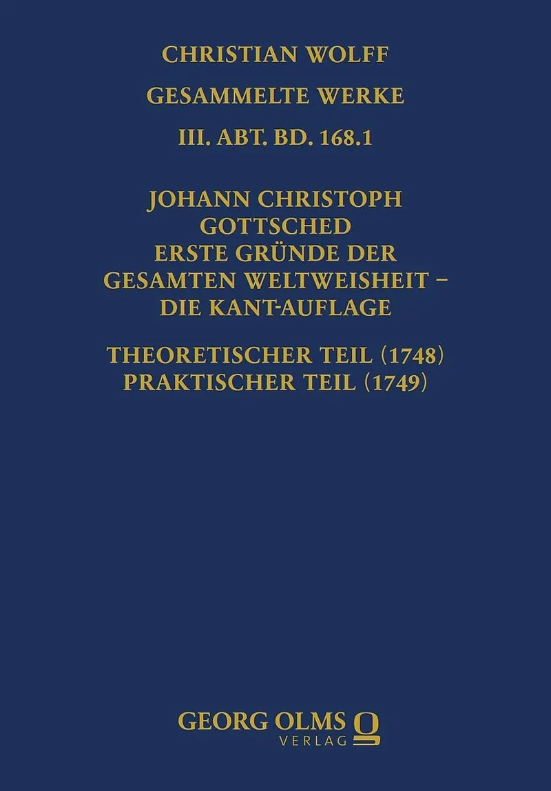 Gottscheds Erste Gründe (5. Aufl.,1748/49) aller philosophischen Disziplinen finden sich in Kants Bücherschrank: eine Kant-Auflage . Beide sind Königsberger. Eindeutige Beispiele eines begrifflichen Einflusses Gottscheds auf Kant sind: Critik , Urtheilskraft u...