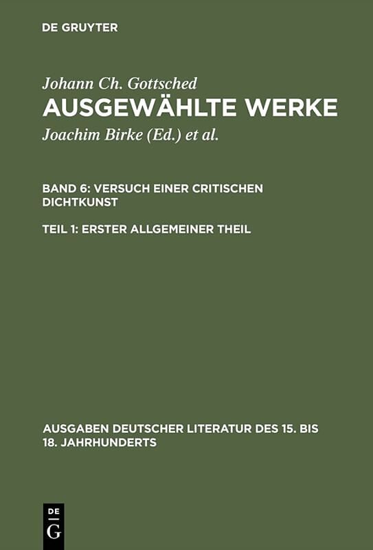 Dieser Titel, "Versuch einer Critischen Dichtkunst. Erster Allgemeiner Theil", ist eine wissenschaftliche Publikation, erschienen bei De Gruyter Brill. Ausführliche Beschreibung, Inhaltsverzeichnis und weitere Angaben finden Sie auf der Verlagswebsite: https:/...