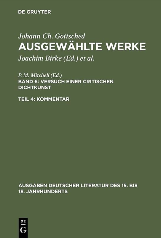 Dieser Titel, "Versuch einer Critischen Dichtkunst. Kommentar", ist eine wissenschaftliche Publikation, erschienen bei De Gruyter Brill. Ausführliche Beschreibung, Inhaltsverzeichnis und weitere Angaben finden Sie auf der Verlagswebsite: https://www.degruyterb...