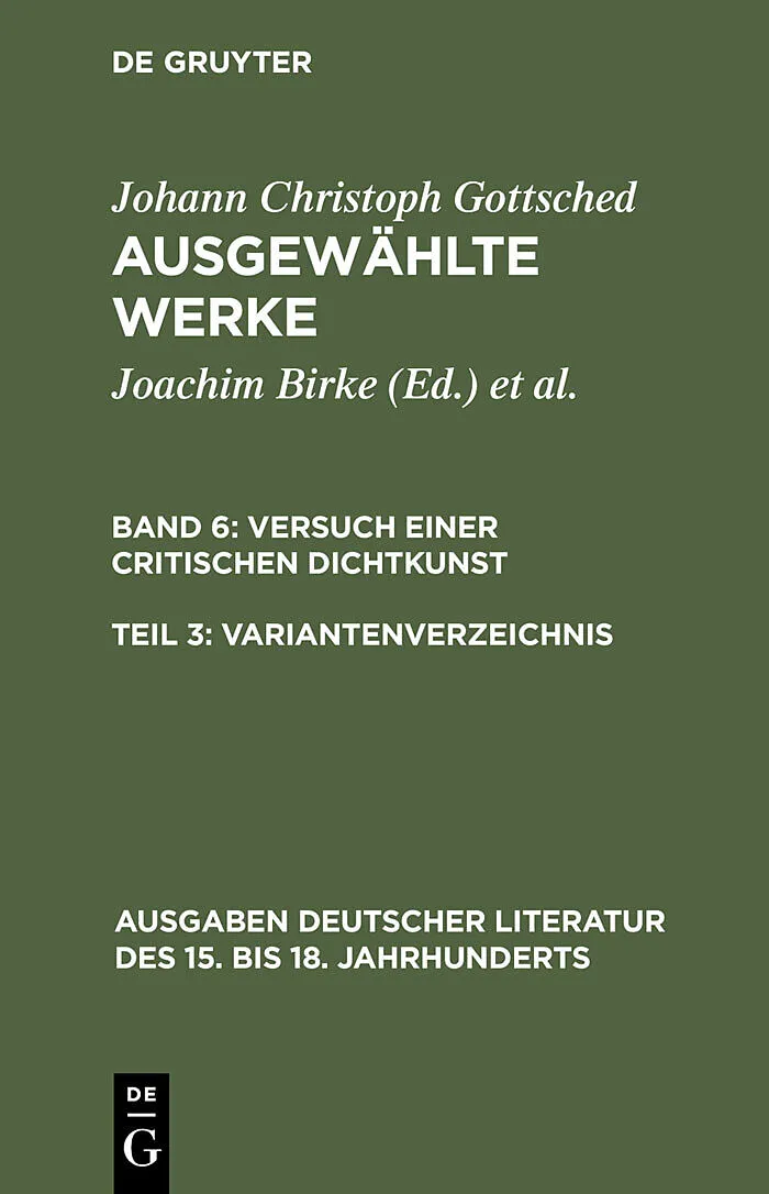 Dieser Titel, "Versuch einer Critischen Dichtkunst. Variantenverzeichnis", ist eine wissenschaftliche Publikation, erschienen bei De Gruyter Brill. Ausführliche Beschreibung, Inhaltsverzeichnis und weitere Angaben finden Sie auf der Verlagswebsite: https://www...