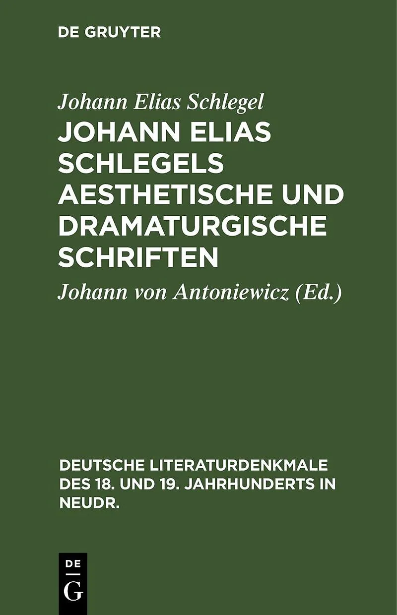 Frontmatter -- Einleitung -- Johann Elias Schlegels aesthetische und dramaturgische Schriften -- Auszug eines Briefs, Welcher einige kritische Anmerkungen über die Trauerspiele der Alten und Neuern enthält. [Werke 3, 203-212] -- Schreiben an den Herrn N. N. üb...