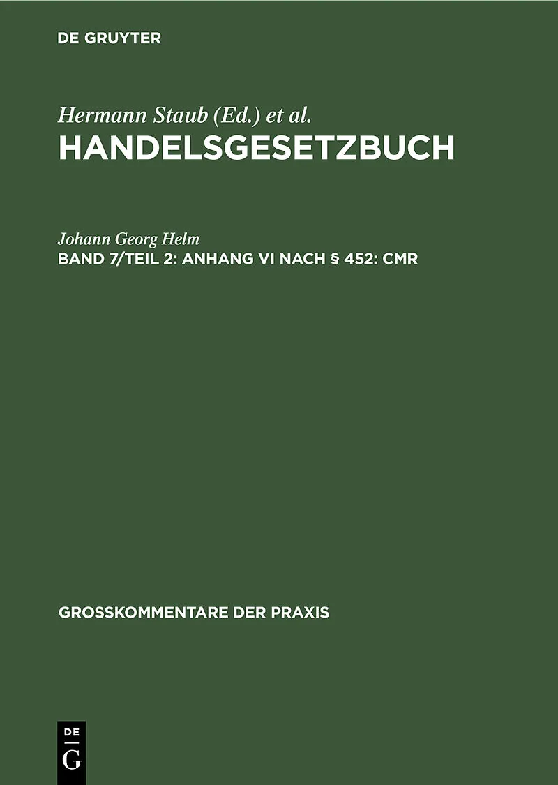 Dieser Titel, "Anhang VI nach § 452: CMR", ist eine wissenschaftliche Publikation, erschienen bei De Gruyter Brill. Ausführliche Beschreibung, Inhaltsverzeichnis und weitere Angaben finden Sie auf der Verlagswebsite: https://www.degruyterbrill.com/isbn/9783110...