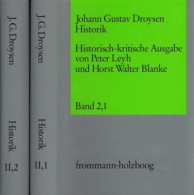 Die beiden Bände enthalten 50 Texte aus dem Umkreis der Historik, d.h. wesentliche Materialien zur Entwicklungsgeschichte der Droysen'schen Historik: geschichtstheoretische Aufsätze, Denkschriften (über das Bildungswesen und den Wissenschaftsbetrieb), programm...