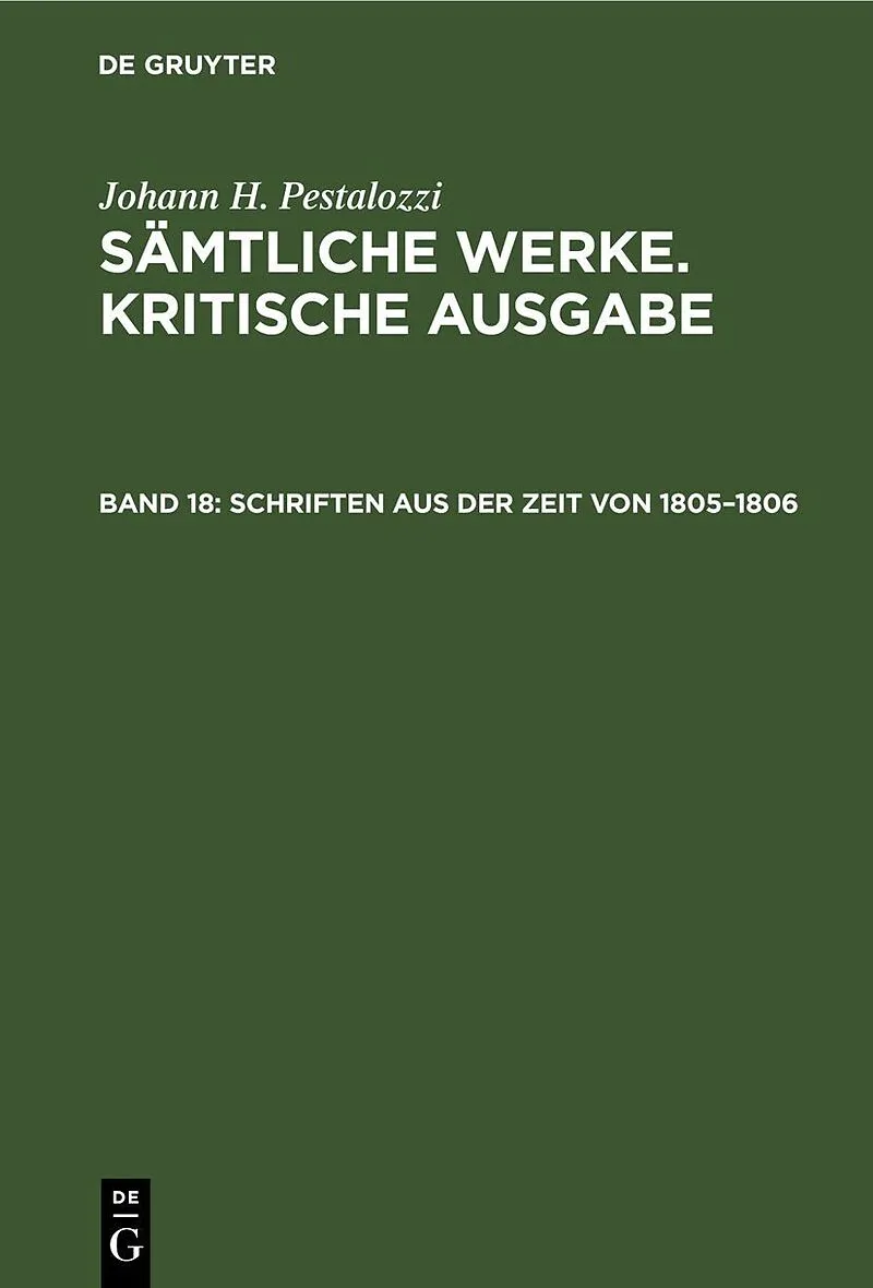 Frontmatter -- Inhalt -- Vorwort -- 1. Geist und Herz in der Methode. 1805 -- 2. Zweck und Plan einer Armen-Erziehungs-Anstalt. Oktober 1805 -- 3. Aufruf für die Armenanstalt. Gegen Ende 1805 -- 4. Gutachten über ein Seminar im Kanton Wadta. Anfang 1806 -- 5. ...