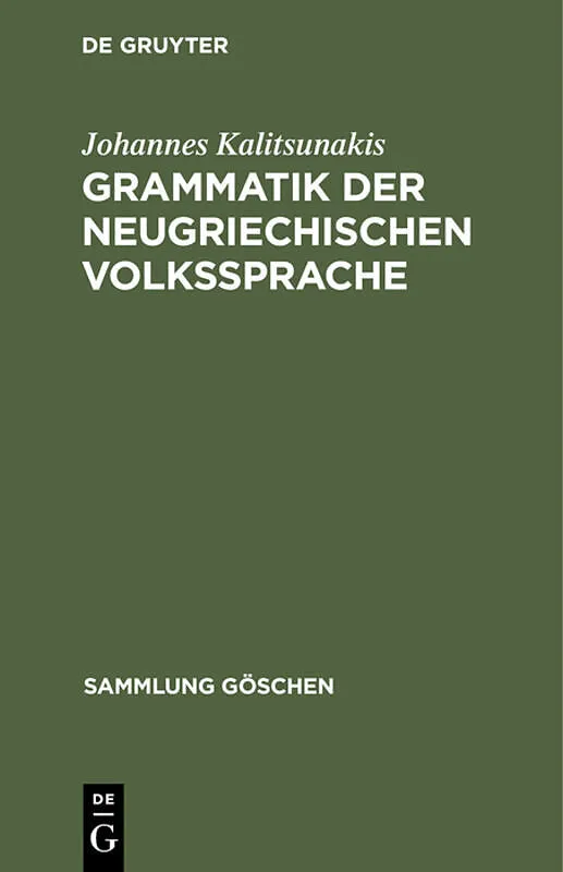 Frontmatter -- Inhaltsverzeichnis -- Verzeichnis von Wörtern -- Literaturverzeichnis -- Einleitung -- Lautlehre -- Flexionslehre -- Übersicht der Suffixe der Volkssprache -- Verben und verbale Redewendungen -- Zur Satzlehre -- Einiges über die neugriechischen ...