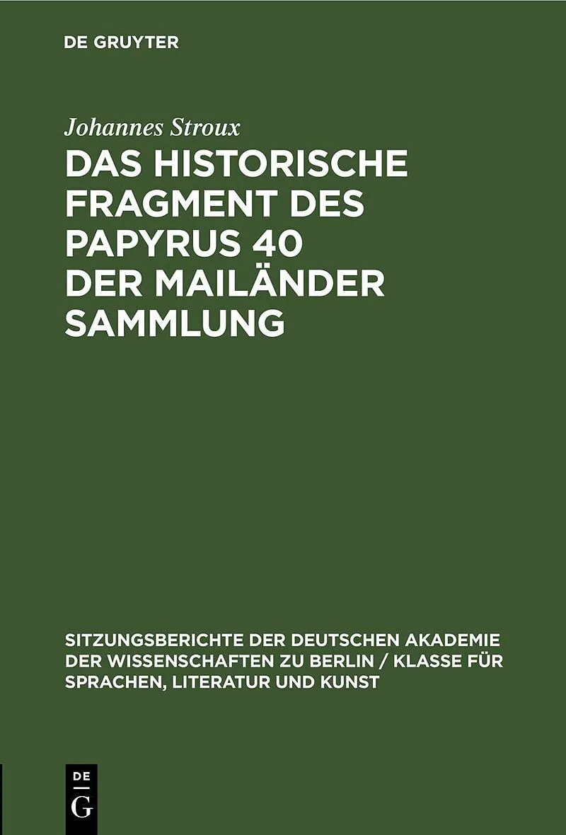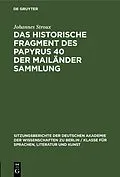 Dieser Titel, "Das historische Fragment des Papyrus 40 der Mailänder Sammlung", ist eine wissenschaftliche Publikation, erschienen bei De Gruyter Brill. Ausführliche Beschreibung, Inhaltsverzeichnis und weitere Angaben finden Sie auf der Verlagswebsite: https:...
