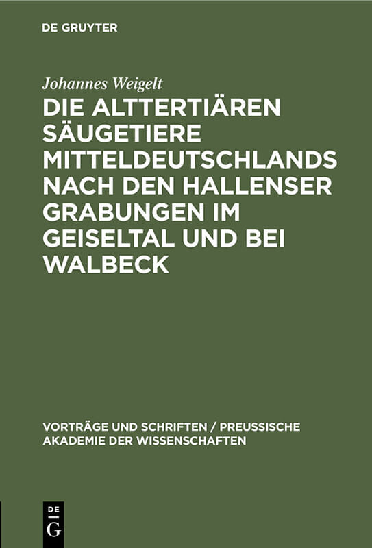 Die alttertiären Säugetiere Mitteldeutschlands nach den Hallenser Grabungen im Geiseltal und bei Walbeck