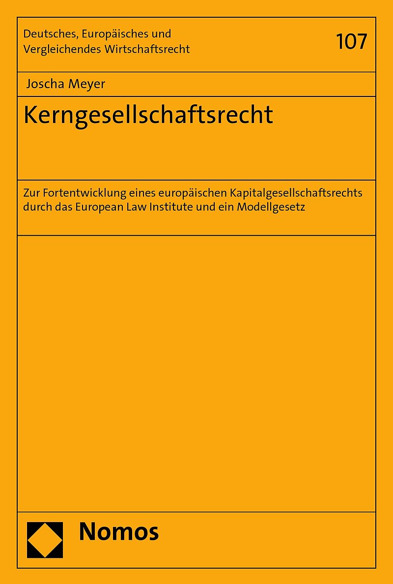 Kerngesellschaftsrecht mit diesem Begriff spricht sich die Arbeit für ein neues an die europäischen Verhältnisse angepasstes Verständnis des Kapitalgesellschaftsrechts und eine private Initiative zu dessen Implementierung aus. Hierzu werden als materiell-recht...