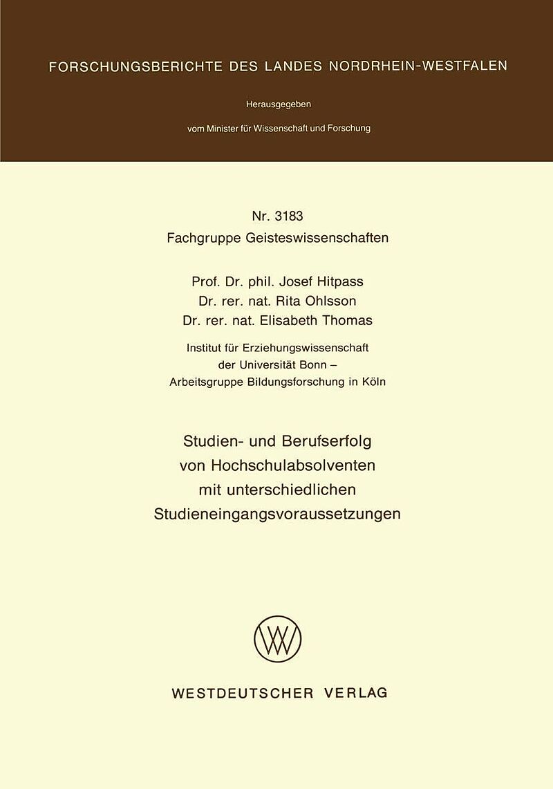 Studien- und Berufserfolg von Hochschulabsolventen mit unterschiedlichen Studieneingangsvoraussetzungen