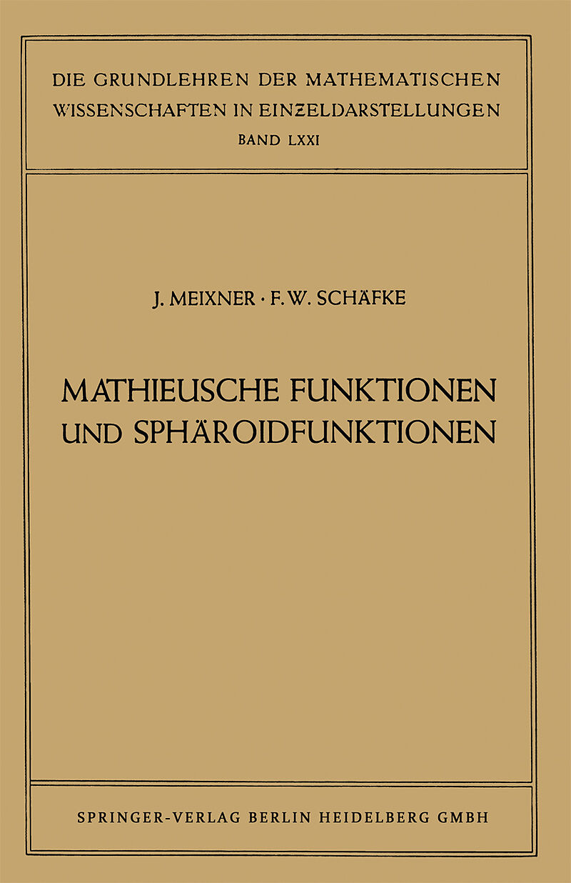 Grundlagen.- 2. Mathieusche Funktionen.- 3. Sphäroidfunktionen.- 4. Anwendungen der Mathieuschen Funktionen und der Sphäroidfunktionen.- Verzeichnis der wichtigsten Funktionssymbole.- Namen- und Sachverzeichnis.