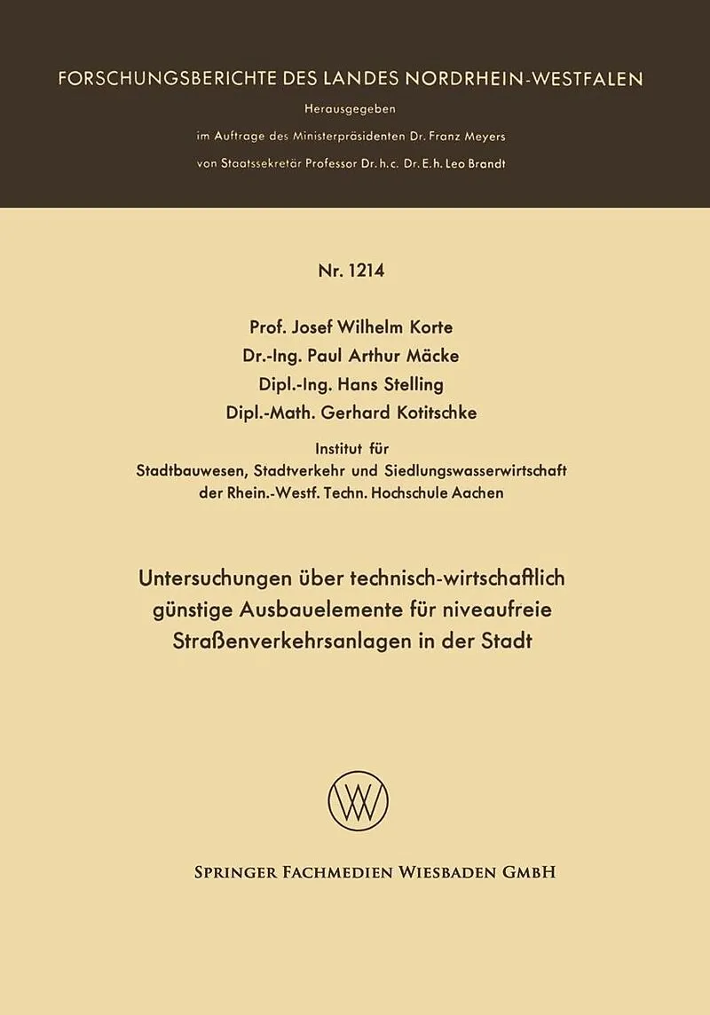 Inhalt I.- 1. Einleitung.- 2. Verkehrsmeßgeräte.- 3. Richtlinien für den zweckmäßigen Einsatz.- II.- 1. Vorbemerkung.- 2. Versuchsdurchführung.- 3. Definition der wichtigsten Begriffe.- 4. Ausgangswerte.- 5. Ansatz.- 6. Einführende Bemerkung über Bedeutung und...