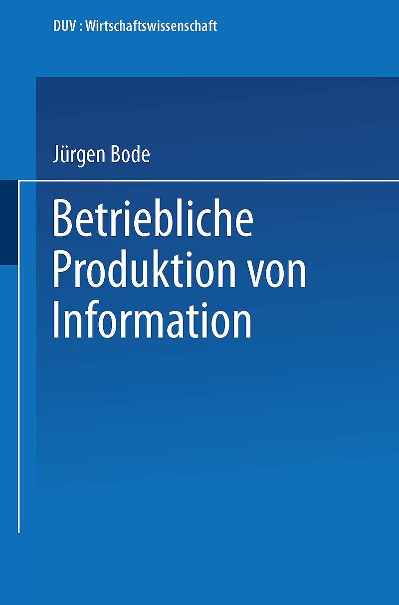 Inhalt 1 Einleitung und Begriffsbestimmung.- 2 Information als Produkt und Produktionsfaktor.- 3 Produktionsmodelle für die Informationsproduktion.- 4 Input-Output-Analyse der Informationsproduktion.- 5 Ausblick: nicht-deterministische Produktionsmodelle....