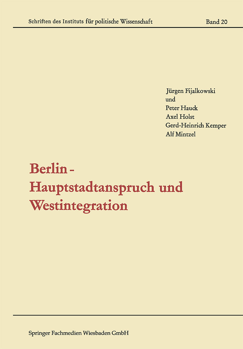Inhalt Vorbemerkung.- Gründung, Ostentflechtung und Westintegration der Berliner Parteien und Gewerkschaften.- Probleme und Praxis der Einbeziehung Berlins in die Rechtsordnung der Bundesrepublik.- Schwierigkeiten der Eingliederung West-Berlins in die Wirtscha...