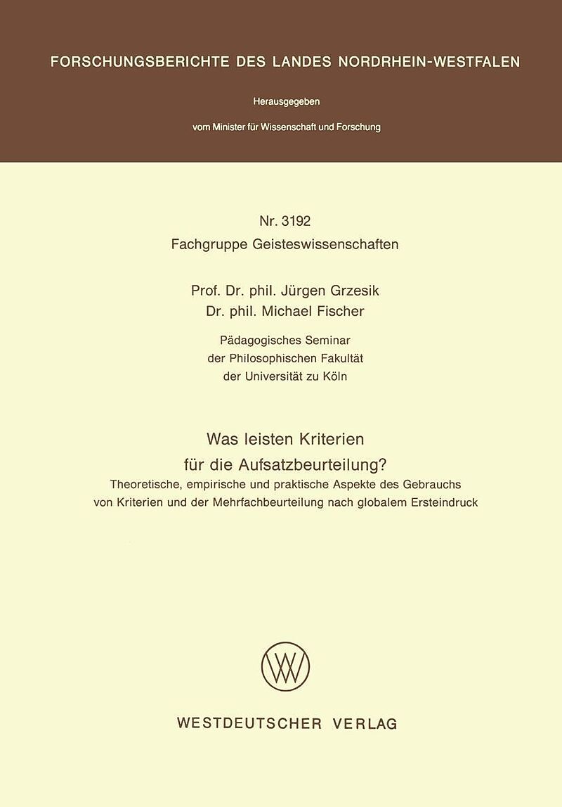 Inhalt Erster Teil: Grundsätzliches zum Gebrauch von Kriterien im Prozeß der Aufsatzbeurteilung.- 1. Was wird von Kriterien für die Aufsatzbeurteilung erwartet, und wieweit konnten bis jetzt diese Erwartungen erfüllt werden?.- 2. Der Beziehungszusammenhang, in...