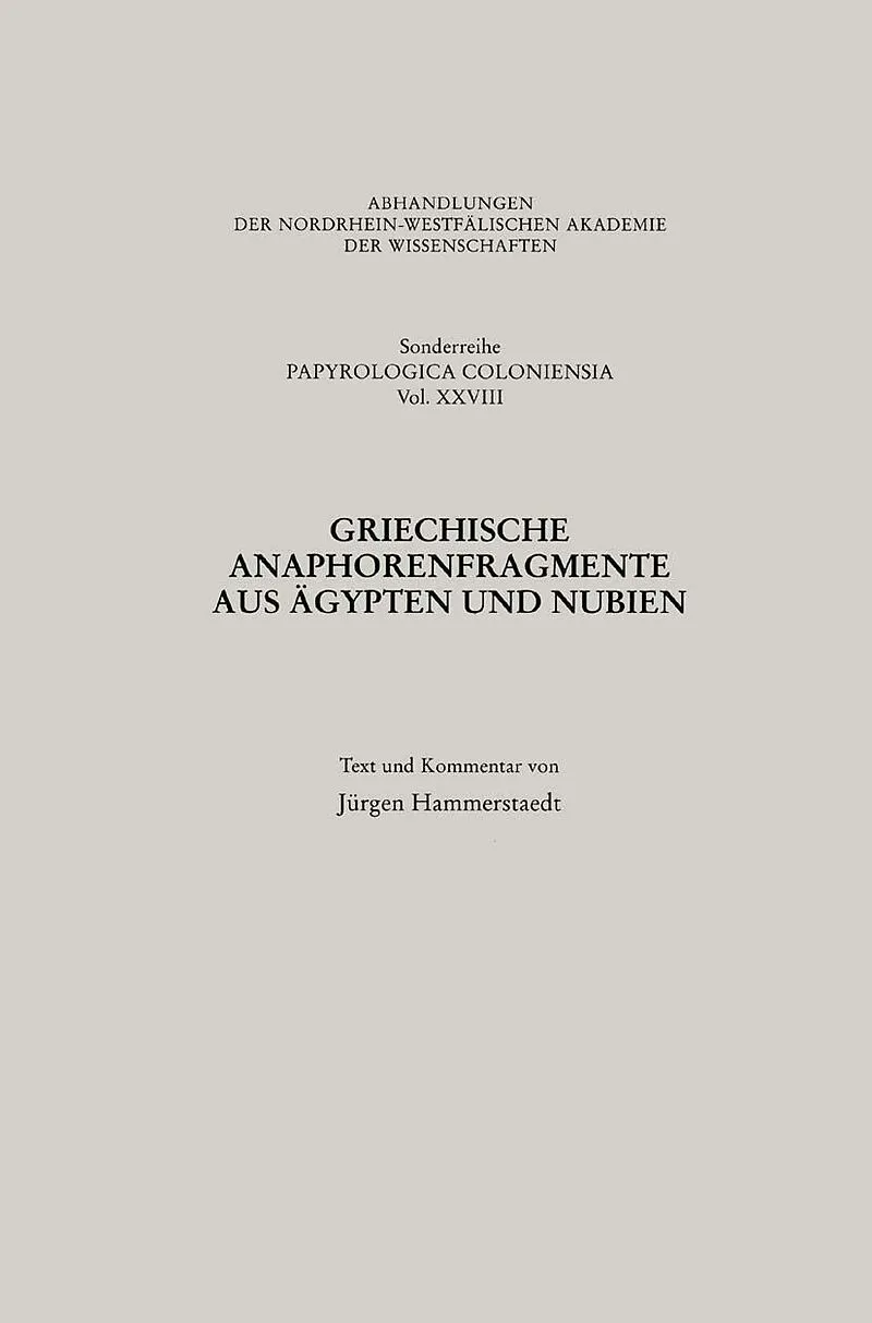 Inhalt Die Schöpfung schriftlicher Anaphorenformulare am Ausgang der Antike.- Zum Inhalt des Corpus fragmentarisch erhaltener spätantiker und frühbyzantinischer griechischer Anaphoren.- Spätantike und frühbyzantinische Liturgieformulare in Ägypten und Nubien.-...