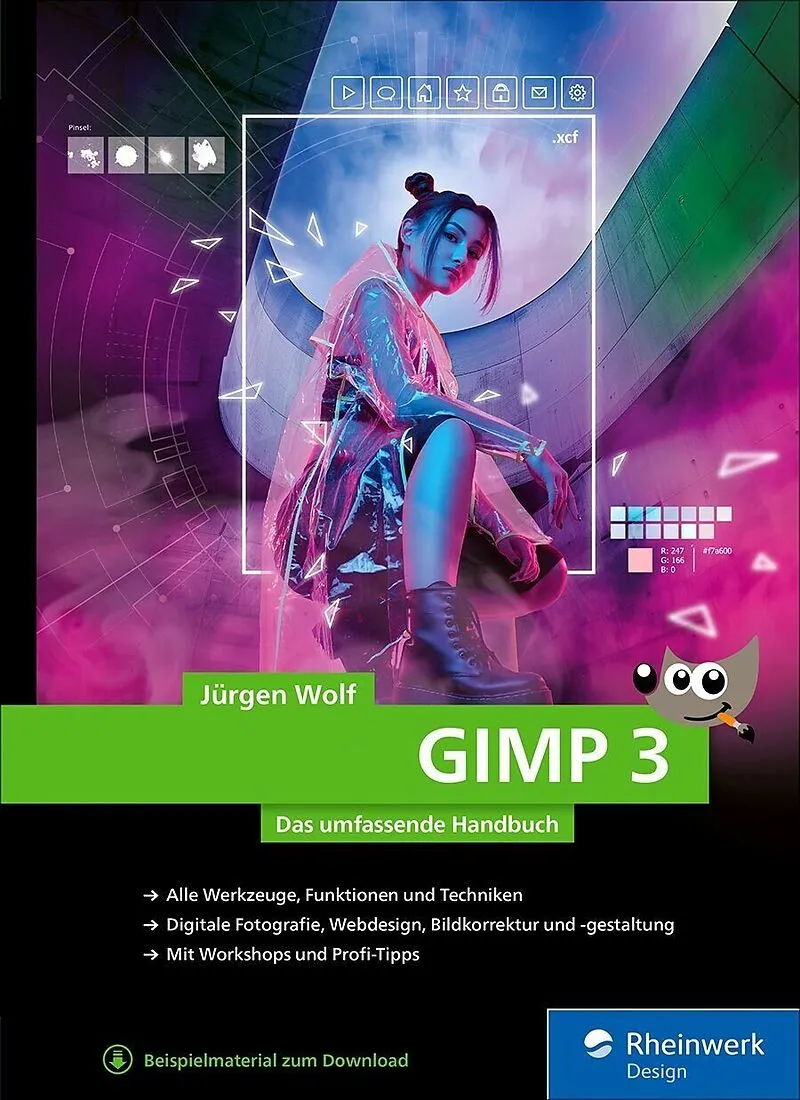 GIMP von A bis Z, praxisnah erklärtMit diesem umfassenden Handbuch von Jürgen Wolf bleiben keine Fragen offen: Sie lernen GIMP von A bis Z kennen und erfahren, was wirklich in der Software steckt. Egal, ob Sie Ihre Fotos bearbeiten, Montagen erstellen oder Gra...GIMP von A bis Z, praxisnah erklärtMit diesem umfassenden Handbuch von Jürgen Wolf bleiben keine Fragen offen: Sie lernen GIMP von A bis Z kennen und erfahren, was wirklich in der Software steckt. Egal, ob Sie Ihre Fotos bearbeiten, Montagen erstellen oder Grafiken für die eigene Website gestalten wollen hier finden Sie schnell und zuverlässig Antwort auf Ihre Fragen. Mit detaillierten Anleitungen und Tipps zeigt Ihnen dieses Buch, wie Sie auch fortgeschrittene Techniken meistern, GIMP in Ihren Workflow integrieren und mit nützlichen Plug-ins erweitern. Umfassend und anfängerfreundlich Ihr Lern- und Nachschlagewerk für den täglichen Einsatz.Alle Werkzeuge, Funktionen und TechnikenDigitale Fotografie, Webdesign, Bildkorrektur und GestaltungMit Workshops und Profi-TippsAus dem Inhalt:Die Arbeitsoberfläche kennenlernenGrundlagen der BildbearbeitungFarben korrigieren und verfremdenSchärfen und weichzeichnenEbenen, Auswahlen, PfadeZuschneiden und ausrichtenFotos für den Druck vorbereitenMalen und zeichnen mit GIMPRAW, HDI und DRITypografie und TexteffekteFilter & Effekte: Zaubern mit GIMPPlugins und Skript-Fu