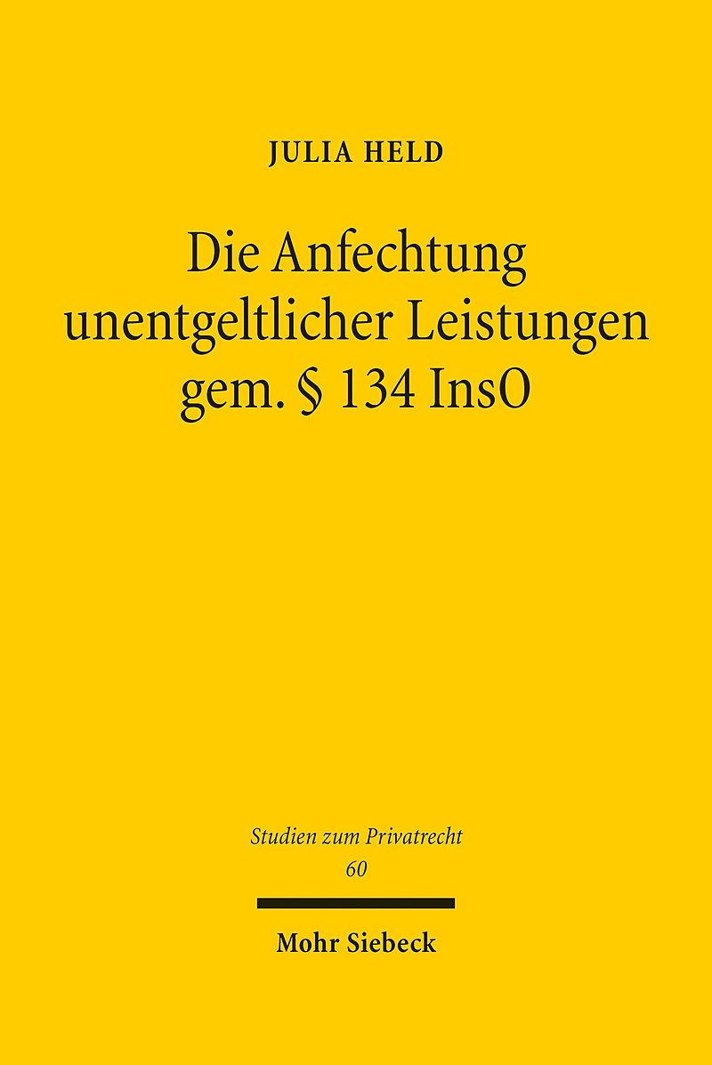 Julia Held deals with the topical issue of contesting services provided free of charge in insolvency cases. She develops her own model for interpreting § 134 of Germany's Insolvency Code, on whose basis the requirements for an unpaid performance are clearly ou...