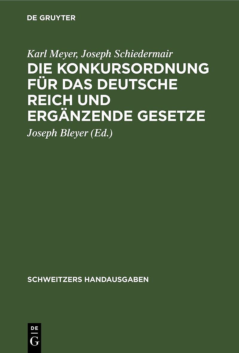 Dieser Titel, "Die Konkursordnung für das Deutsche Reich und ergänzende Gesetze", ist eine wissenschaftliche Publikation, erschienen bei De Gruyter Brill. Ausführliche Beschreibung, Inhaltsverzeichnis und weitere Angaben finden Sie auf der Verlagswebsite: http...