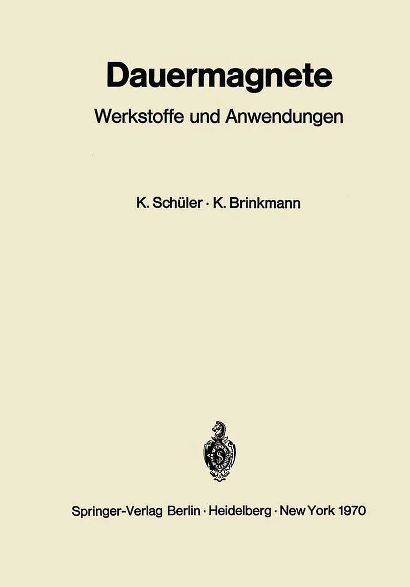 Inhalt Erster Teil Theorie der Dauermagnete und -magnetsysteme.- I. Über die Theorie des Ferromagnetismus.- II. Theorie der Magnetisierungskurve.- III. Dauermagnetischer Kreis.- IV. Werkstoffkunde.- V. Magnetisieren, Entmagnetisieren und Messen von Dauermagnet...
