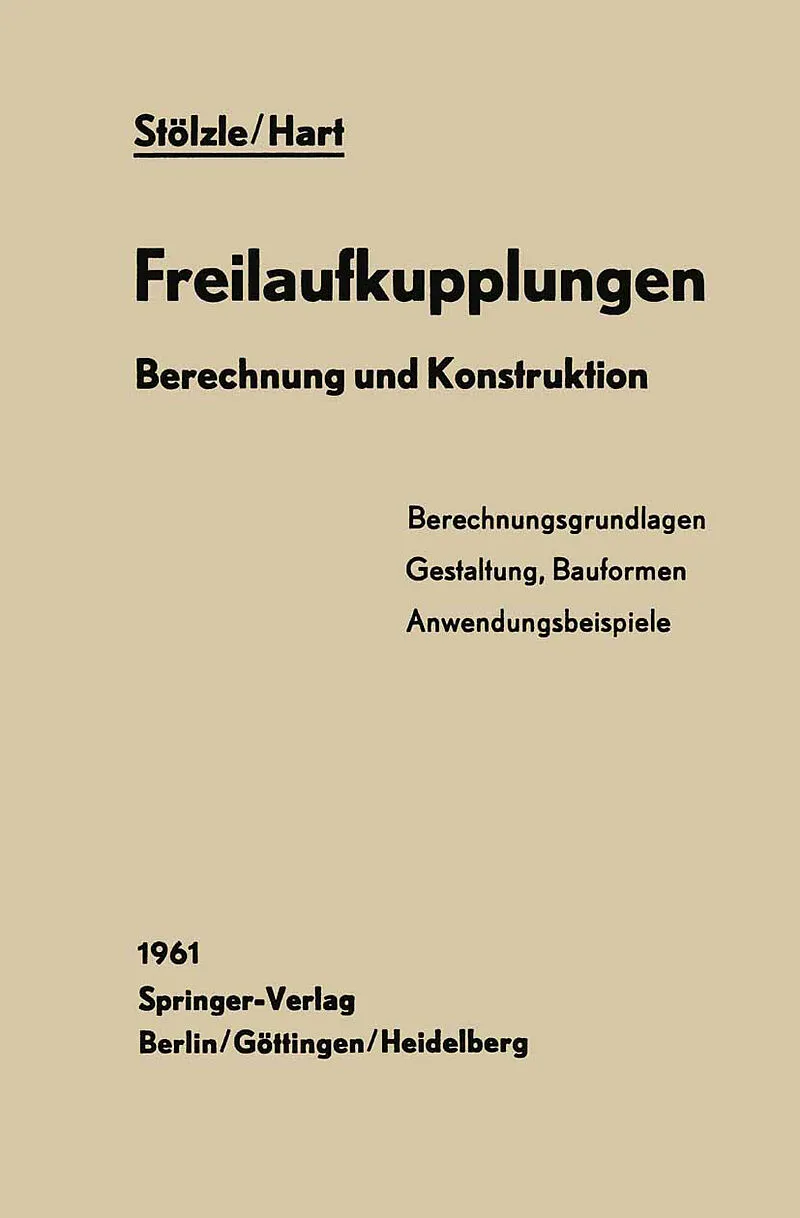 Inhalt 1 Überblick.- 2 Funktion und Eigenschaften.- 3 Begriffsbestimmung.- 4 Berechnungsgrundlagen.- 4.1 Bezeichnungen.- 4.2 Klemmrollenfreilauf.- 4.3 Klemmkörperfreilauf.- 4.4 Kegelfreilauf.- 4.5 Elastischer Drehweg eines Freilaufes.- 4.6 Normal- und Schubspa...