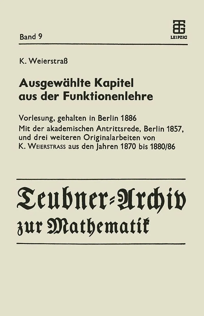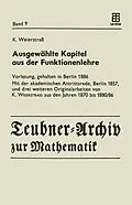 Dieser Band enthält die Vorlesung Ausgewählte Kapitel aus der Funktionenlehre , die Karl Weierstraß im Sommersemester 1886 an der Berliner Universität gehalten hat. Sie war von ihm als Ergänzung seiner turnusmäßigen Vorlesung "Einleitung in die Theorie der ana...