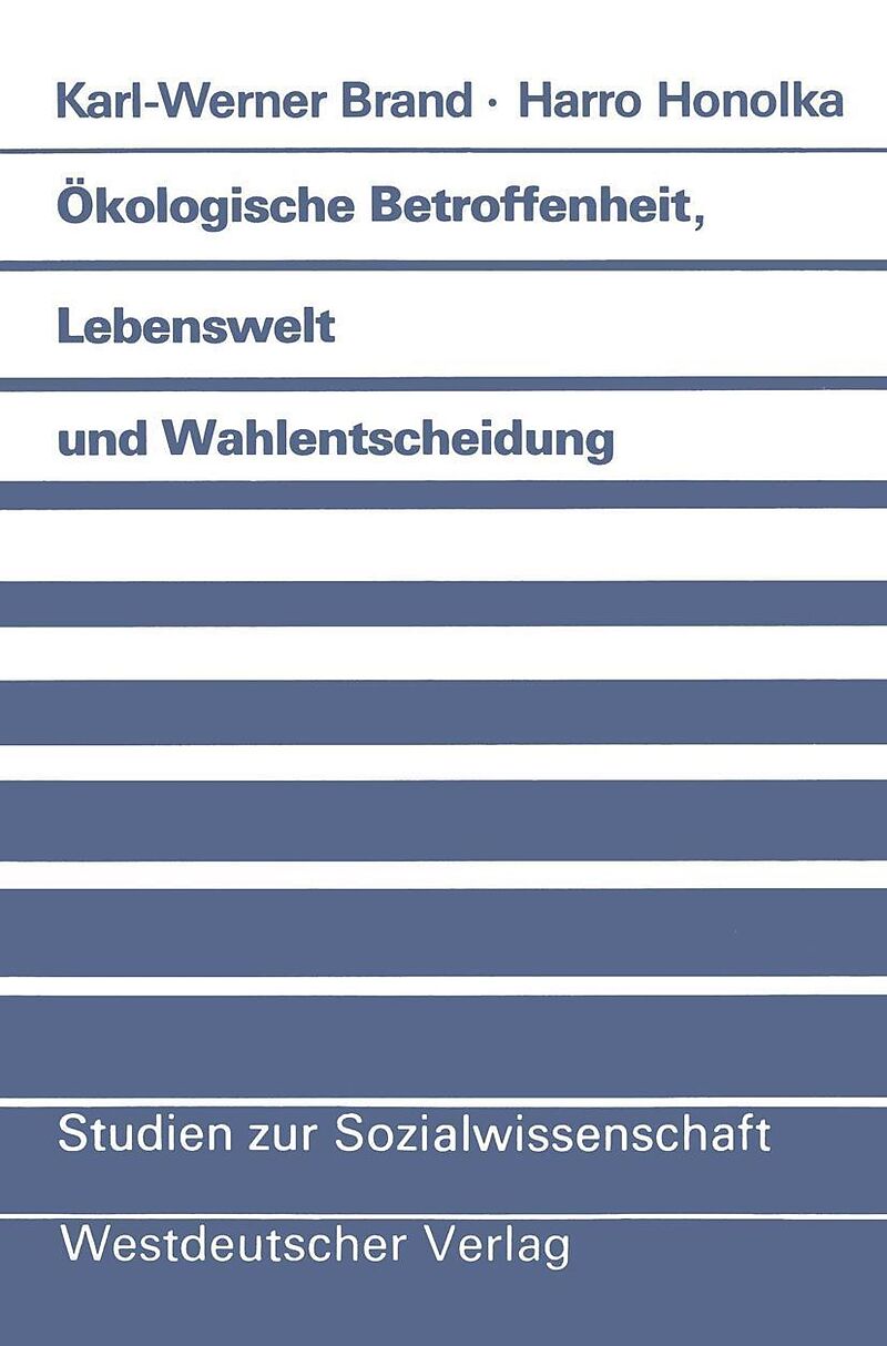 Inhalt I Theoretische und methodische Anlage der Studie.- 1. Problemaufriß und Fragestellung.- 2. Ökologische Betroffenheit, Lebenswelt und Wahlentscheidung: Zur theoretischen Anlage der Studie.- 3. Gesellschaftliche und politische Rahmenbedingungen der Bundes...