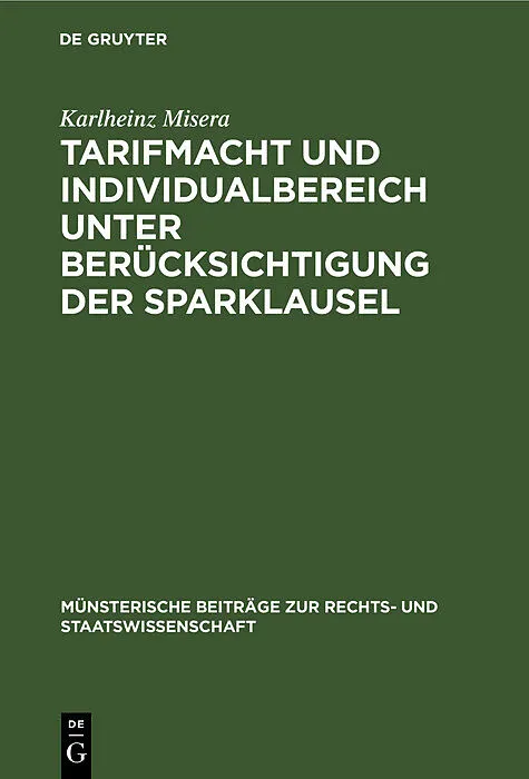 Frontmatter -- VORWORT -- INHALT -- LITERATURVERZEICHNIS -- ABKÜRZUNGSVERZEICHNIS -- 1. Abschnitt. FRAGESTELLUNG UND GRUNDSÄTZLICHES -- 2. Abschnitt. TARIFMACHT UND INDIVIDUALBEREICH -- 3. Abschnitt. DIE ZULÄSSIGKEIT VON SPARKLAUSELN -- Ergebnis -- Backmatter
