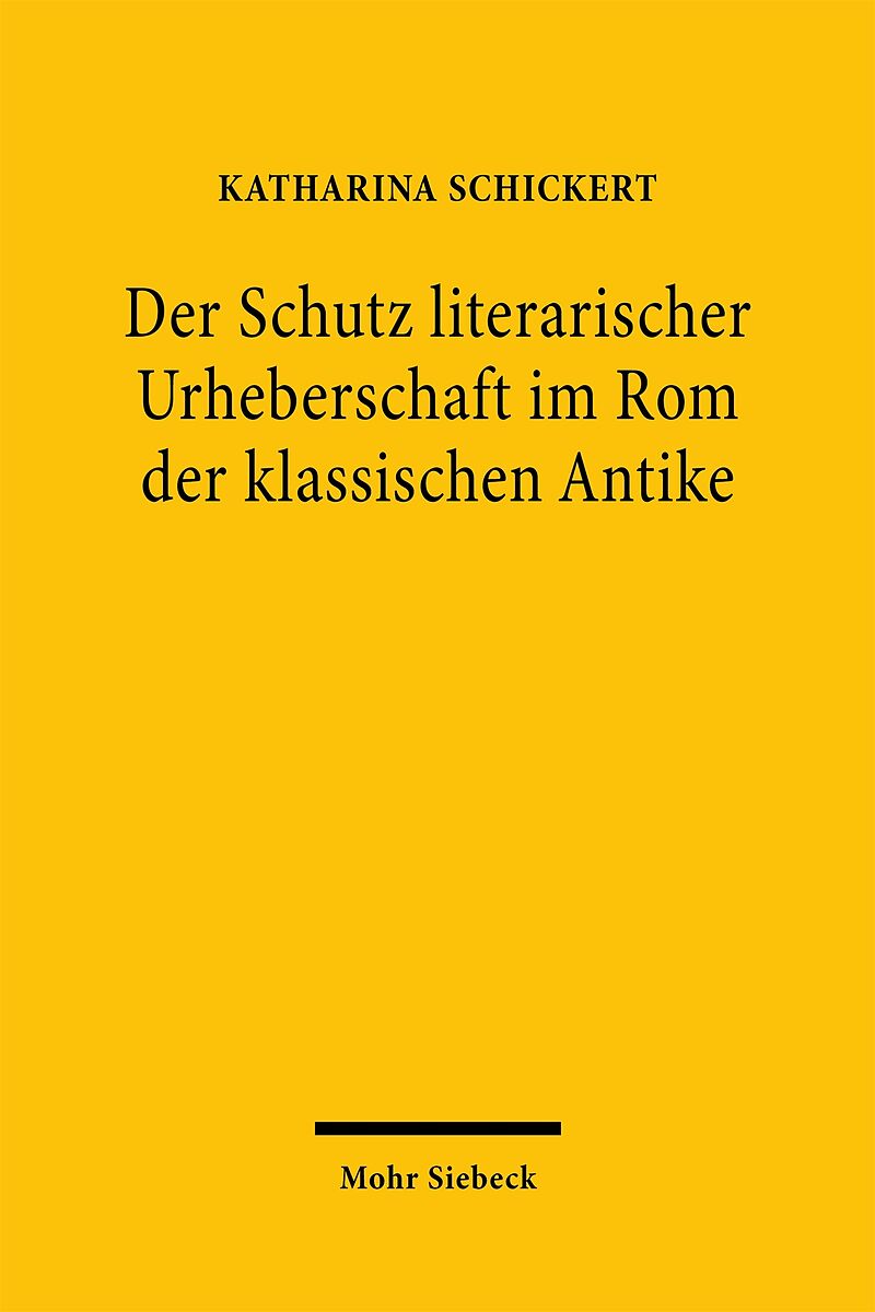 Ancient Rome had no copyright law to protect literary works. Katharina Schickert does however show that these works were not completely unprotected. The ancient Romans created a system of social conventions which were so effective in protecting works from plag...
