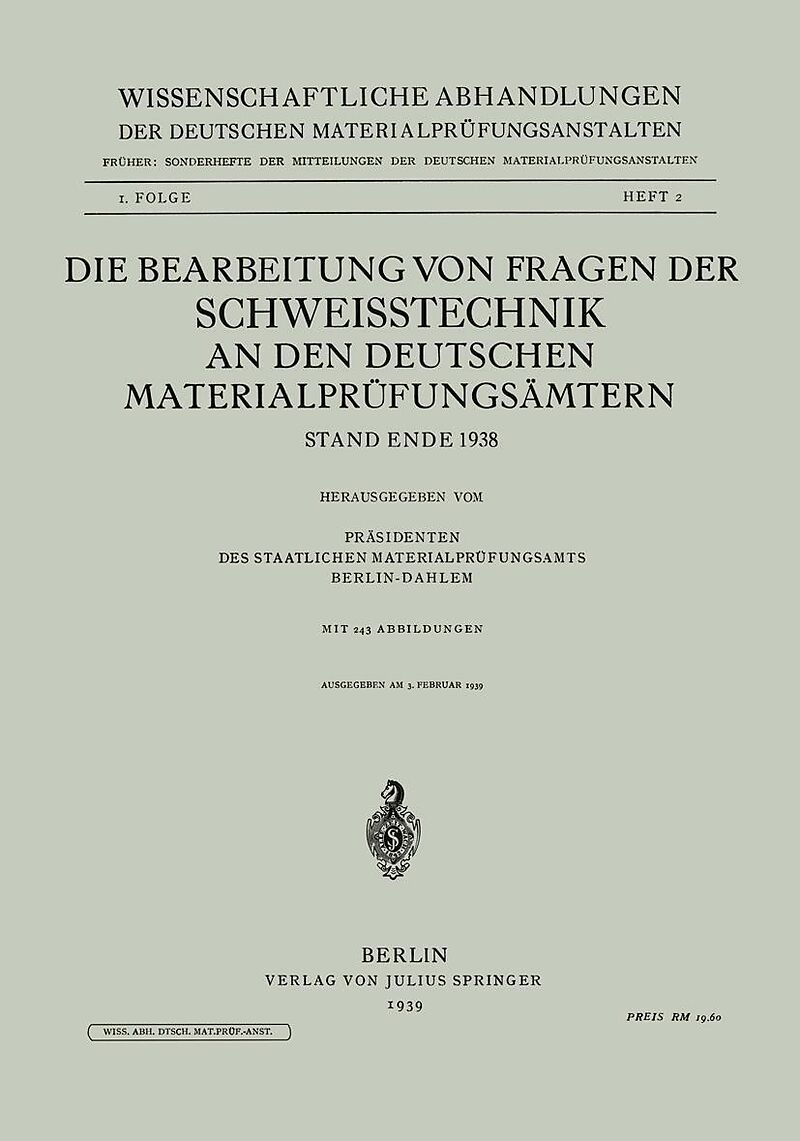 Die Bearbeitung von Fragen der Schweisstechnik an den Deutschen Materialprüfungsämtern