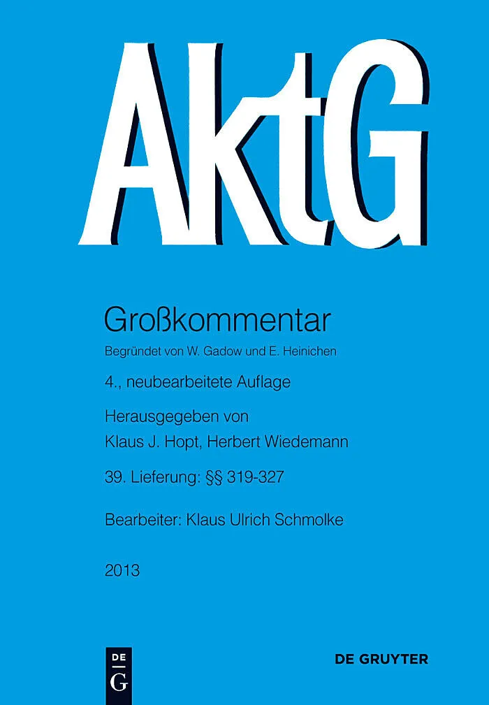 This 39th release for the 4th edition Commentary on the German Stock Corporation Act discusses §§ 319 to 327.