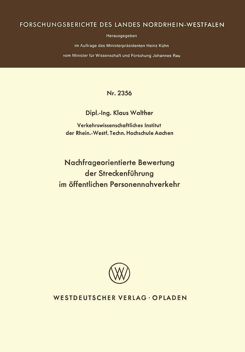 Inhalt 1 Einführung.- 2 Ermittlung des Einzugsbereiches von Haltestellendes Öffentlichen Verkehrs.- 2.1 Grundsätzliches und methodisches Vorgehen.- 2.2 Mögliche Einflüsse auf die Ansprechbarkeit.- 2.3 Auswahl von Untersuchungsgebieten für die Bestimmung von An...