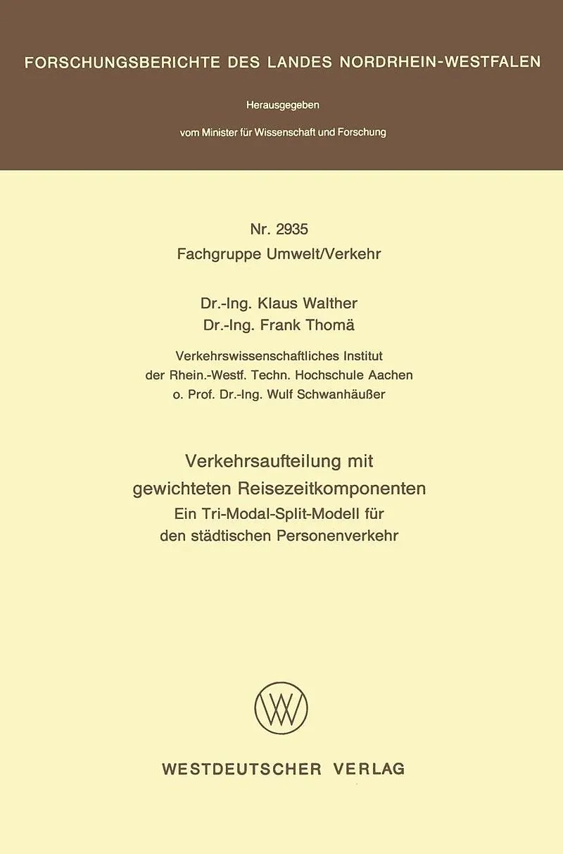 Inhalt Anlass und Zielsetzung.- Abriss zur Verkehrsaufteilung.- Die Reisezeit als Kriterium bei der Verkehrsaufteilung.- Entwicklung Eines Verhaltensorientierten Modells for die Verkehrsaufteilung auf der Basis Gewichteter Reisezeitkomponenten.- Ergebnisse.- R...