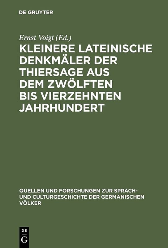 Dieser Titel, "Kleinere lateinische Denkmäler der Thiersage aus dem zwölften bis vierzehnten Jahrhundert", ist eine wissenschaftliche Publikation, erschienen bei De Gruyter Brill. Ausführliche Beschreibung, Inhaltsverzeichnis und weitere Angaben finden Sie auf...
