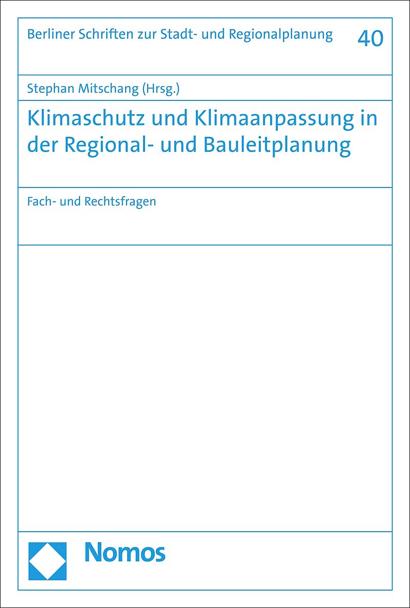 Der Tagungsband enthält die schriftlich ausgearbeiteten Vorträge eines im September 2020 durchgeführten Online-Seminars an der Technischen Universität Berlin mit dem Thema "Klimaschutz und Klimaanpassung in der Regional- und Bauleitplanung Fach- und Rechtsfrag...