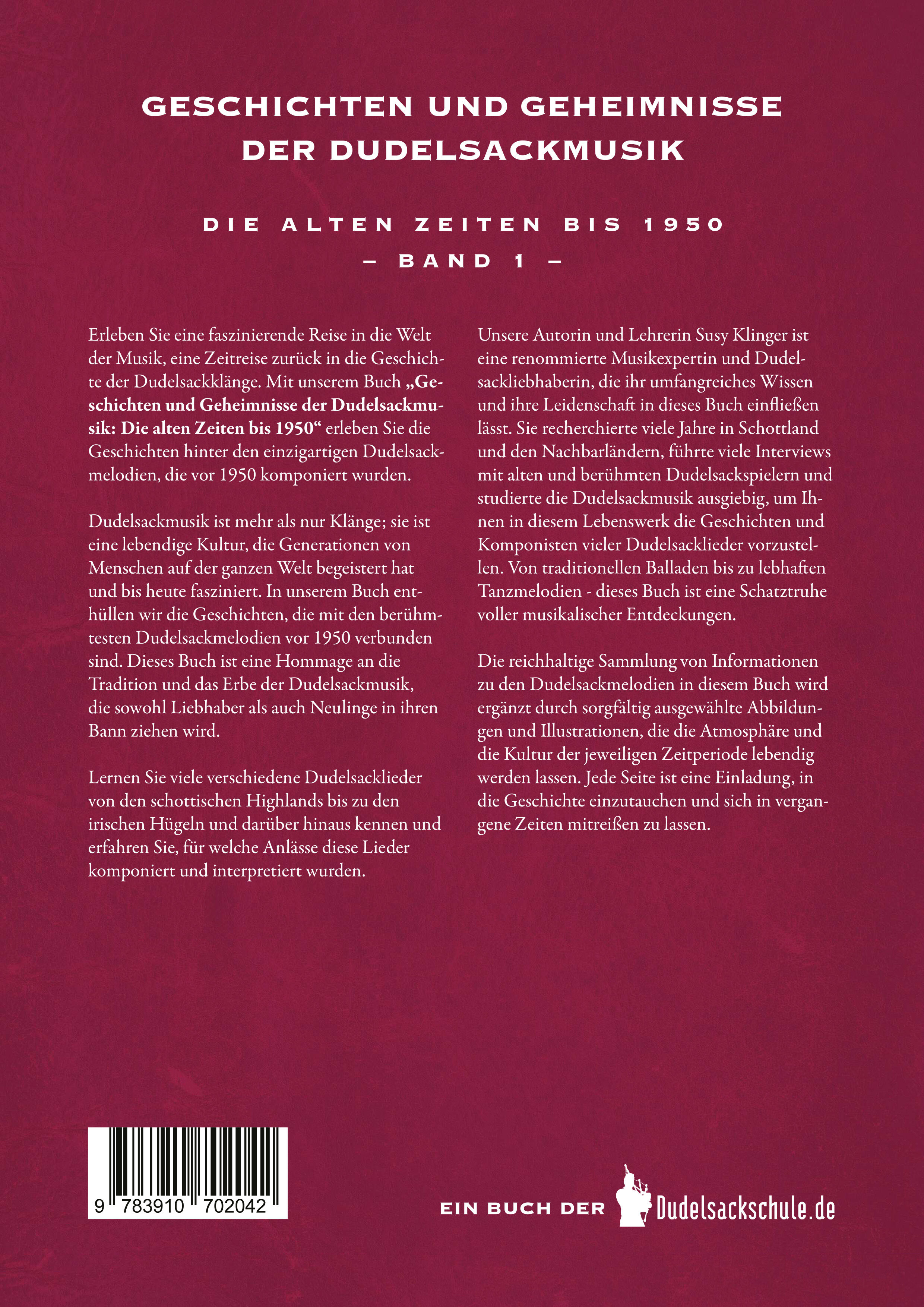Erleben Sie eine faszinierende Reise in die Welt der Musik, eine Zeitreise zurück in die Geschichte der Dudelsackklänge. Mit unserem Buch, "Geschichten und Geheimnisse der Dudelsackmusik - Die alten Zeiten bis 1950", erleben Sie auf 128 Seiten die Geschichten ...