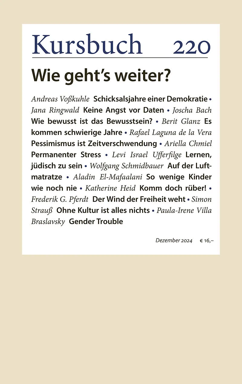 Die Grundfrage von Kursbuch 220, der 50. Ausgabe seit dem Relaunch im Jahr 2012, lautet: »Wie geht´s weiter?« Dabei geht es nicht um das Kursbuch an sich, sondern um die Frage wie es überhaupt weitergeht. Denn: In unserer Gesellschaft gibt immer weniger Kontin...
