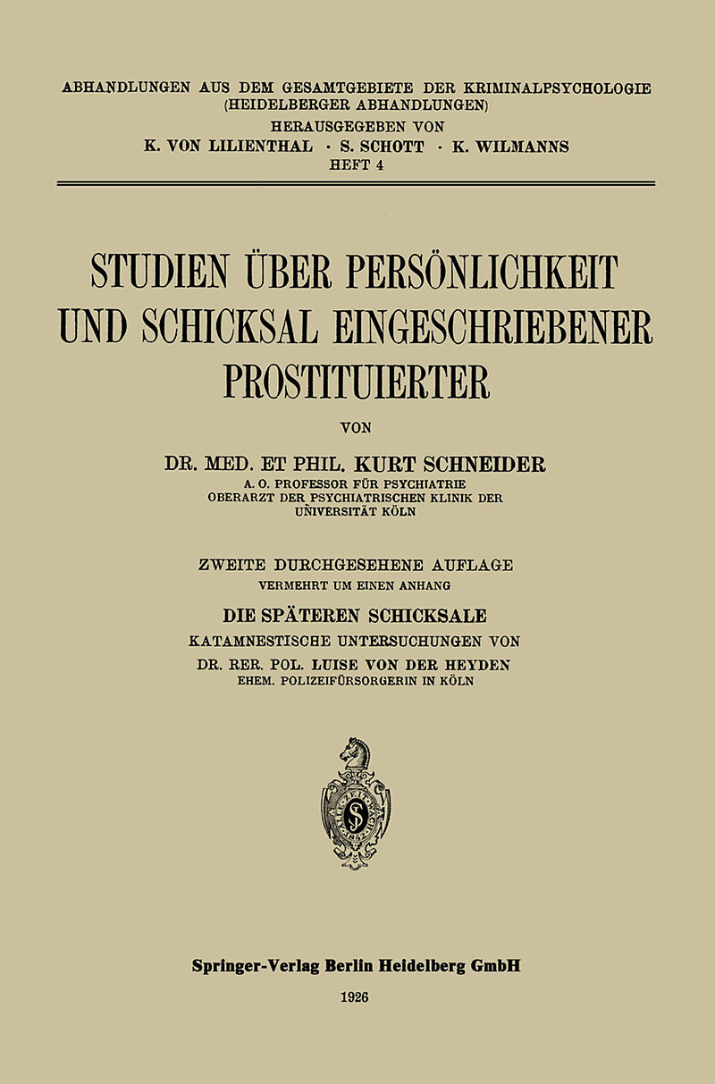 Studien über Persönlichkeit und Schicksal Eingeschriebener Prostituierter