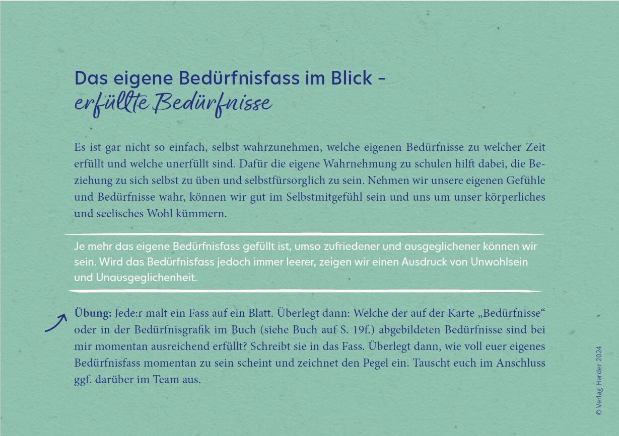 Eine bedürfnisorientierte Grundhaltung sollte in Kitas inzwischen Voraussetzung sein. In der Realität sieht das allerdings oft ganz anders aus. Und wie kann das im oft hektischen und stressigen Kita-Alltag überhaupt gelingen? Mit diesen Reflexionskarten kommen...