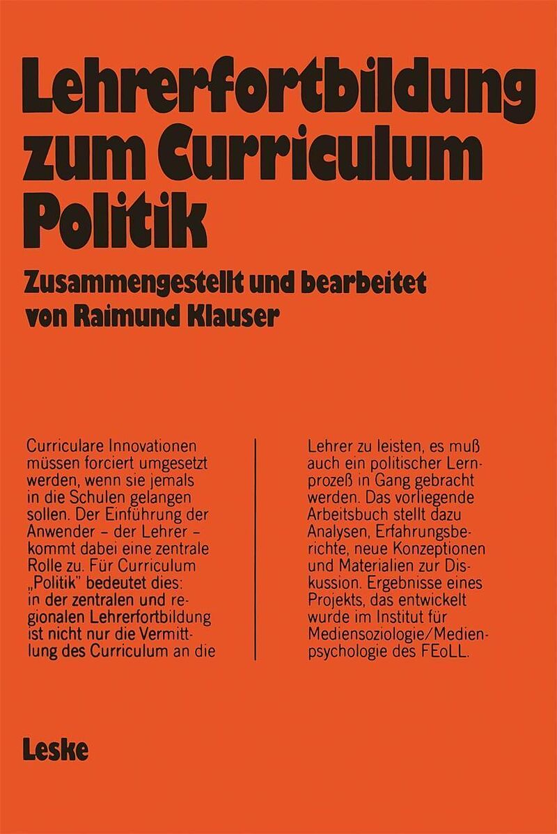 Inhalt Innovation und Curriculum. Ein Projekt zur Implementation und Dissemination von Curriculum Politik.- Nachvollzug als Zugangshilfe. Ein Vorschlag zum Einstieg in die Arbeit mit den Richtlinien für den Politik-Unterricht NW.- KaoL Konzept adressatenorient...