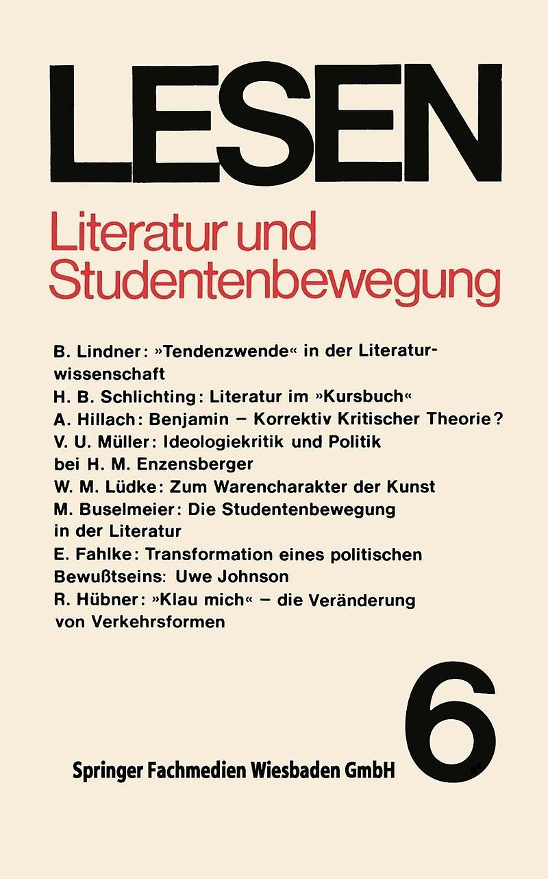 Inhalt Prosperität des Bestattungswesens? Anmerkungen zur Tendenzwende in der Literaturwissenschaft.- Das Ungenügen der poetischen Strategien: Literatur im Kursbuch' 19681976.- Walter Benjamin Korrektiv Kritischer Theorie oder revolutionäre Handhabe? Zur Rezep...