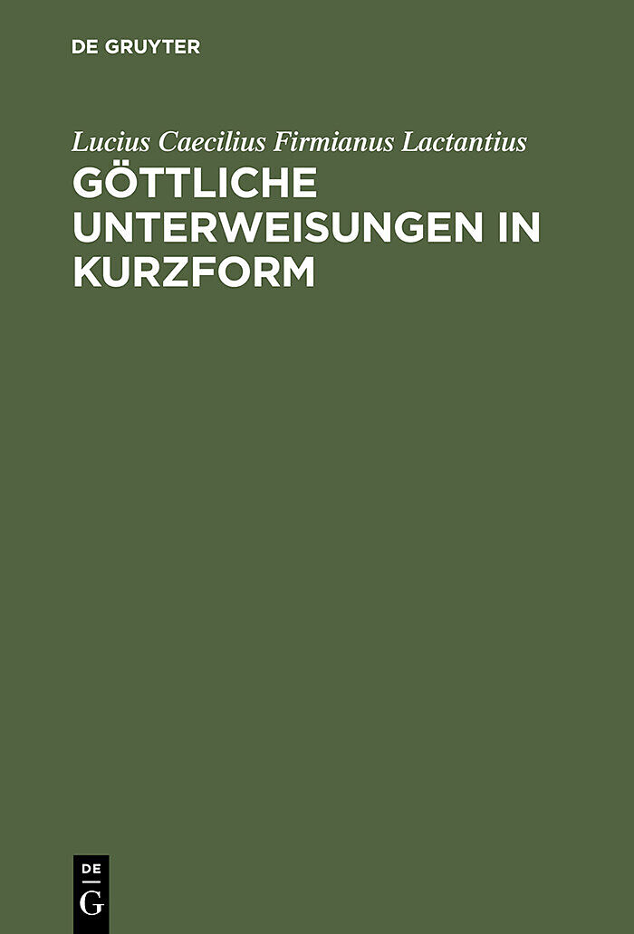 Frontmatter -- Vorwort -- Inhaltsverzeichnis -- Einleitung -- Lucius Caelius Firmianus, genannt Lactantius -- Erklärendes Verzeichnis der Eigennamen -- Stellenregister -- Backmatter
