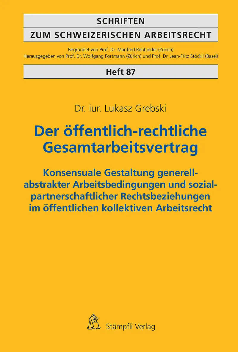 Das vorliegende Werk befasst sich mit den rechtlichen Aspekten des öffentlich-rechtlichen Gesamtarbeitsvertrags, folglich mit der konsensualen Gestaltung generell-abstrakter Arbeitsbedingungen und sozialpartnerschaftlicher Rechtsbeziehungen im öffentlichen kol...